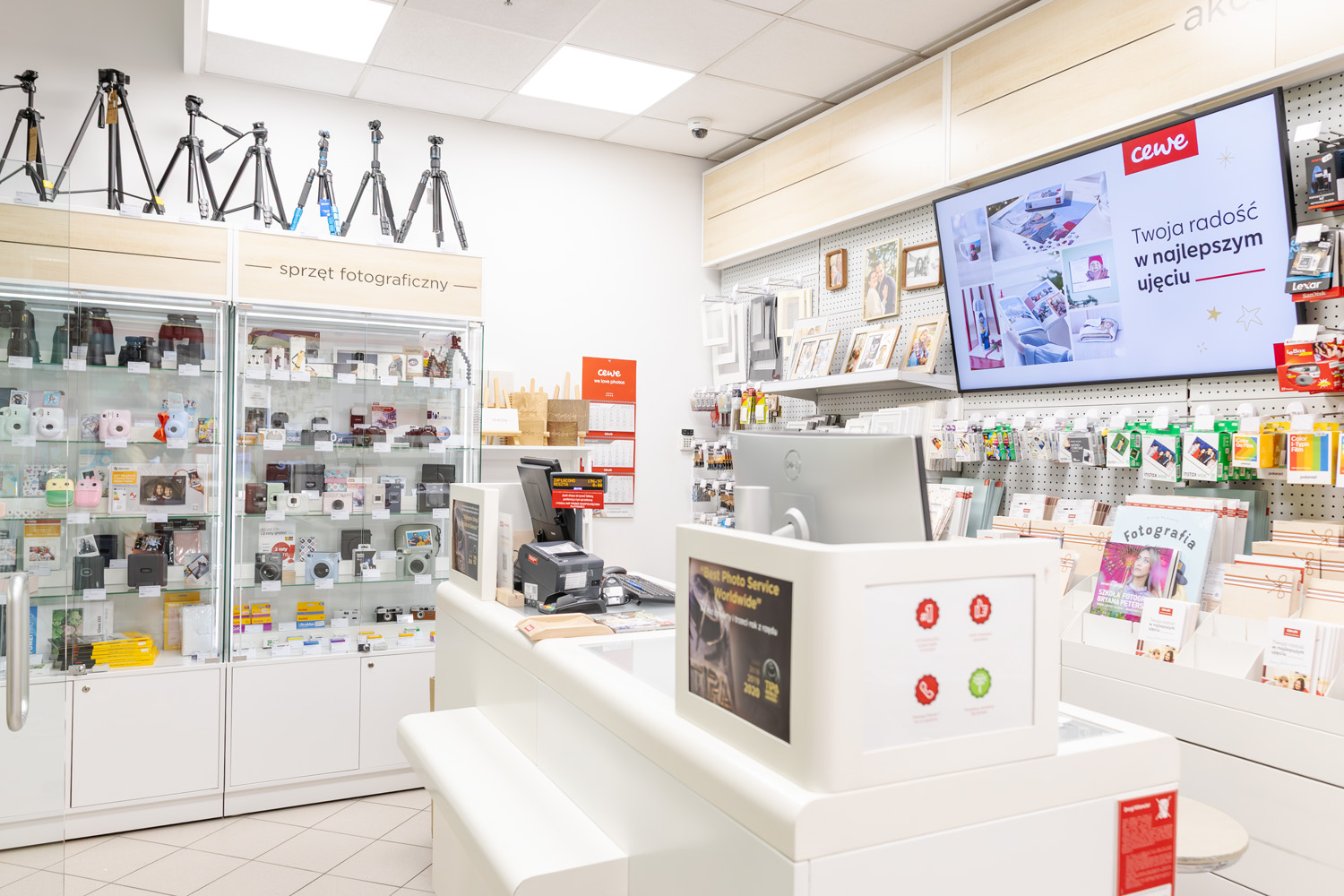 CEWE FOTOJOKER to lider usług fotograficznych w Polsce z ponad 20-letnim doświadczeniem. Salon oferuje szeroki wybór sprzętu fotograficznego renomowanych marek, takich jak Canon, Sony, Fujifilm, Nikon oraz OM SYSTEM. Na miejscu można wykonać profesjonalne zdjęcia do dokumentów oraz wydrukować odbitki bezpośrednio z nowoczesnych kiosków CEWE. Klienci mają również możliwość zamówienia personalizowanych fotoproduktów, w tym słynnych fotoksiążek, fotoobrazów, kalendarzy i unikalnych fotoprezentów. Profesjonalny personel chętnie doradzi w doborze odpowiedniego aparatu lub akcesoriów, dbając o to, aby każdy klient znalazł produkt idealnie dopasowany do swoich potrzeb.